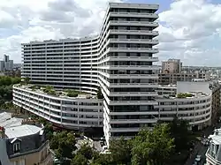 Built from 1969 to 1971 in two stages by architects Jean Fayeton (Jean-Louis Fayeton) and Michel Herbert for Cogedim, it consists of two buildings that intersect:[2]