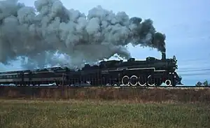During the first operations seasons of the CVL, every excursion train was mandated to be assisted by a Chessie diesel locomotive for whenever No. 4070 suffered a mechanical problem, but as the MRHF proved the locomotive's reliability, the requirement was lifted in later years.[10] In September 1975, No. 4070 was moved to Pittsburgh, Pennsylvania to pull three excursions for Steam Tours, Inc. on the Pittsburgh and Lake Erie (P&LE) mainline between Pittsburgh and Brownsville.[10] During the first excursion, the fireman was struggling to get the locomotive's Duplex stoker to work before he resorted to hand firing it for the remainder of the run.[10] In May 1977, No. 4070 pulled two more excursions for Steam Tours while doubleheading with Reading 2102 between Pittsburgh and Altoona, Pennsylvania over the Horseshoe Curve.[10][11] During the return run of the first excursion, No. 4070 snapped its right eccentric rod at speed while climbing the curve, and the excursion had to be completed behind diesel locomotives.[10][11] The damaged eccentric rod was subsequently repaired, and No. 4070 completed the second doubleheader excursion without incident.[10]