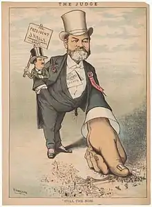 On August 16, 1862, Hamilton was born in Youngstown, Ohio. He was the art editor for the New York-based satirical magazine Judge for over 20 years.[1] Judge, founded in 1881 allied with the Republican Party and supported the candidacy of William McKinley in the 1892 United States presidential election and the 1896 United States presidential election through political cartoons, most of which were drawn by Hamilton and Bernhard Gillam.[2] Hamilton was also an art editor for The Graphic, and Leslie's Weekly. He died in Los Angeles in 1926.[3]