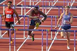 Stanley Grant Holloway (born November 19, 1997)[11] is an American professional hurdler and sprinter. He is a three-time world champion (2019 Doha, 2022 Eugene and 2023 Budapest), 2020 Tokyo Olympic silver medalist in the 110 meters hurdles and the second-fastest man in history at the event with a personal best of 12.81 seconds, set at the U.S. Olympic Trials on June 26, 2021. In the 60 meters hurdles, Holloway is the 2022 World Indoor champion and the world indoor record holder with a time of 7.29 seconds set in Madrid, Spain on February 24, 2021.