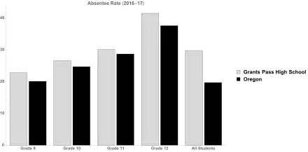 In 2017 the school had higher absentee rates, across all grades, than the state average.