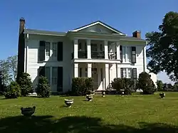 Grassland Farm is a historic gem of the antebellum style of architecture typical of the southern states of that time, in Shelbyville, Tennessee, U.S.. It was built on land donated by the then new state of North Carolina, in the Federal style of the early 1800s (1810-1815), by Alexander Grier, a war hero who had served in the American Revolutionary War.[2] A portico, designed in the Greek Revival architectural style, was added shortly thereafter along with a great room connecting the formerly outside kitchen. It has been listed on the National Register of Historic Places since March 4, 1975.[3] It is noted for its extraordinary architecture and sprawling 71 acres of gently rolling hills. Several of its mantels are considered some of the very best of their genre. The original size of the plantation was 5000 acres. Included on the property are period outbuildings and a breathtaking antique barn. Today, the residence is considered to be among the most beautiful of the area and is privately owned.