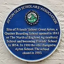 Great Ayton Friends' School (1841–1997) in Great Ayton, North Yorkshire, England, was an independent, co-educational, agricultural boarding school, run by the Religious Society of Friends (the Quakers).