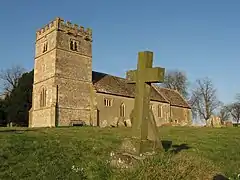 The Church of England parish church of Saint Giles is on a ridge in the southern part of the village. Parts of the church date from about 1200.[10] The west tower was added in the 15th century.[5] The tower has a ring of five bells. Henry Bagley of Chacombe cast the treble, third and fourth bell in 1738. James Wells of Aldbourne, Wiltshire cast the second bell in 1824. Mears and Stainbank of the Whitechapel Bell Foundry cast the tenor bell in 1911. There is also a Sanctus bell that John Taylor cast in 1839, presumably at his then foundry in Oxford. The bells are currently unringable.[11] The churchyard is now managed for wildlife. It has more than 100 species of wild flower, including wild clary, Salvia verbenaca.[12]