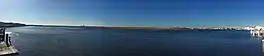 ![]() Great Egg Harbor Bay facing west, with the Great Egg Harbor Bridge, Beesley's Point Generating Station, New Jersey Route 52, and the Rainbow Islands in background | |