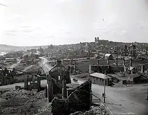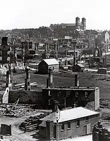 City of St. John's after the great fire of 1892; the double steeples of the Basilica of St. John the Baptist are visible on the far hill