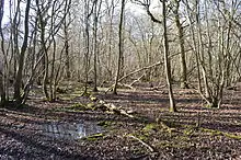 The site is coppiced ancient woodland on boulder clay. It has diverse tree species, including wych elm and hornbeam, resulting in a rich ground flora. Dog's mercury is dominant over most of the woodland floor, with plants such as angelica sylvestris and tufted hair grass in wetter areas.[1]