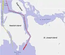 The Great Lakes Waterway (GLW) is a system of natural channels and artificial locks and canals which enable navigation between the North American Great Lakes.[1] Though all of the lakes are naturally connected as a chain, water travel between the lakes was impeded for centuries by obstacles such as Niagara Falls and the rapids of the St. Marys River.[2]