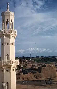 The great mosque of Kano is the oldest mosque in Nigeria and was built for Muhammad Rumfa in the 15th-century. It was made of mud, and was of the soro, or tower, variety.[1][2] Prior to Rumfa's reign and conversion to Islam, the central mosque of Kano was located in two possible locations. The first possibility is the Sharifai quarter, inhabited by the descendants of the 15th-century Berber scholar al-Maghili. The second possibility is the Yan Doya quarter, inhabited by Wangara muslims from the Mali empire.[3]