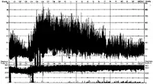 The event was notable for the duration of the destructive winds. As shown on the anemograph trace to the right, wind speeds rose very rapidly from relatively calm to a peak of 97 mph (156 km/h) in Sheffield in the early hours of 16 February, and only slowly decreased throughout the course of the day as the low moved out into the North Sea. The return period for such an intense storm hitting Sheffield is estimated at once every 150 years.[4]
