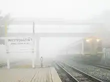 The Maeklong Railway (also known as the Mae Klong Railway) is a 1,000 mm (3 ft 3+38 in) (Metre gauge) railway that runs for nearly 67 kilometres (42 mi)[1] between Wongwian Yai, Bangkok, and Samut Songkhram in Central Thailand. The line consist of two sections: the eastern Mahachai Line, which runs between Wongwian Yai and Mahachai; and the Ban Laem Line, which runs between Ban Laem and Maeklong. The two stretches are separated by the Tha Chin River at Samut Sakhon. The only way to connect between the stations on the opposite sides of the river is by boat.[2]
