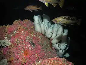 Yellowtail rockfish over boot sponges in Greater Farallones NMS
