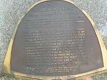 A stone monument was unveiled at the foot of James Avenue in Stephen Juba Park in Winnipeg to commemorate the aqueduct. The monument includes a Historic Sites Advisory Board of Manitoba plaque designed in the shape of the aqueduct pipe, a Canadian Water Landmark plaque by the American Water Works Association, and a National Historic Civil Engineering Site plaque unveiled in 1994 by the Canadian Society for Civil Engineering.[9]