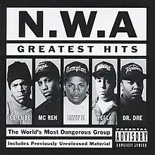 Greatest Hits is a greatest hits album by American hip hop group N.W.A, released on July 2, 1996, via Priority Records. Composed of nineteen tracks, the compilation contains several poplular singles and songs from the group's 1988 debut album Straight Outta Compton, 1990 extended play 100 Miles and Runnin' and their second and final studio album 1991 Niggaz4Life. It includes "Gangsta Gangsta", "Fuck tha Police", previously unavailable remix of "Straight Outta Compton", "Alwayz into Somethin'", remixed "Express Yourself", and "100 Miles and Runnin'", as well as inserts from live concerts. Production was handled by Dr. Dre and DJ Yella with Eazy-E serving as executive producer.