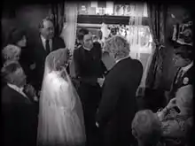 Throughout his career von Stroheim used grotesque imagery and characters. This is most apparent in the wedding-banquet scene, which includes a midget, a hunchback, a woman with buck teeth and a boy on crutches.[74] The wedding guests violently and crudely devour their meal like animals. This scene was unlike any other in films of that period, which treated meals with dignity and a sense of communion.[75] Other instances of grotesque imagery include Trina's fingers becoming infected and amputated.[76] Von Stroheim contrasted love scenes between McTeague and Trina with their ugly, lower-class environment, such as the sewer with the dead rat and a garbage truck driving by as they kiss.[77]