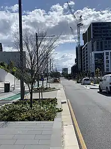 Zetland Avenue west is a new tree-lined boulevard inspired by avenues in Manhattan with a long row of aligned traffic lights.[10]