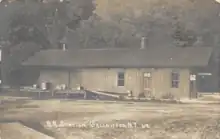 The Rochester, Hornellsville, and Pine Creek Railroad had articles of association filed on March 30, 1871 in New York and the company was formed according to the railroad laws of the state. It planned to build a railroad line from Hornellsville to the New York–Pennsylvania state line.[2] Greenwood, population 1,400 in 1882,[1] and other communities through which the line would run, borrowed money to pay for the railroad construction. In Greenwood's case the sum was $30,000 (equivalent to $733,000 in 2022); Hornellsville borrowed $70,000 and West Union $41,000.[3] Work on the railroad ended with the Panic of 1873, which brought railroad bankruptcies and bank failures. The railroad was never built, and Greenwood had "nothing to show for its bonds except a few miles of inexpensive grading."[1]