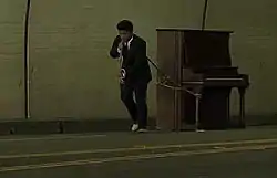 Mars dragging a piano in the video