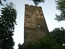 Grenzau Castle (German: Burg Grenzau) is a ruined spur castle at 250 m above sea level (NN) near Höhr-Grenzhausen in the county of Westerwaldkreis in the state of Rhineland-Palatinate. It is the only castle in Germany with a triangular bergfried.