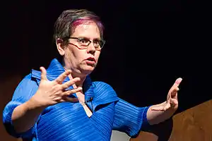 As a speaker, she is a member of the Speakers Bureau for the Secular Student Alliance and the Center for Inquiry.[7] She was a speaker on the Diversity in Skepticism panel at The Amaz!ng Meeting in July, 2011, the Reason Rally in 2012,[12] and the 50th annual convention of American Atheists in 2013.[13]