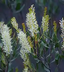 Grevillea integrifolia, commonly known as entire-leaved grevillea,[2] is a species of flowering plant in the family Proteaceae and is endemic to the south-west of Western Australia. It is an erect shrub with egg-shaped leaves, the narrower end towards the base, and cylindrical clusters of white to creamy-white flowers.