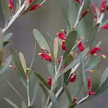 Grevillea pauciflora, commonly known as the few-flowered grevillea,[2] or as Port Lincoln grevillea in South Australia,[3] is a species of flowering plant in the family Proteaceae and is endemic to the south of continental Australia. It is an erect to straggly or spreading shrub with linear to narrowly wedge-shaped leaves and red or orange flowers with a red or orange style.