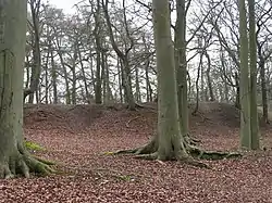 Grimsbury Castle is an Iron Age "multiple enclosure" Hill Fort comprising a large circular encampment situated on a high hill. It is situated within Grimsbury Wood, between Cold Ash and Hermitage, in the county of Berkshire.