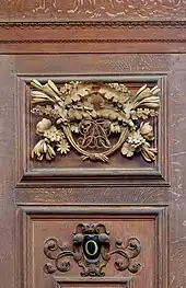 In 1682 King Charles II commissioned Gibbons to carve a panel as a diplomatic gift for his political ally Cosimo III, Grand Duke of Tuscany. The Cosimo Panel is an allegory of art triumphing over hatred and turmoil and includes a medallion with a low relief of Pietro da Cortona, Cosimo's favourite painter. The panel is housed in the Pitti Palace in Florence. It was recently displayed in the United Kingdom in the Grinling Gibbons and the Art of Carving exhibition held at the V&A from 22 October 1998 until 24 January 1999.[5]