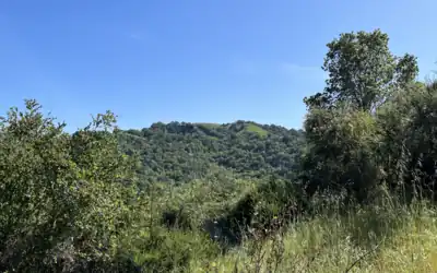 Grizzly Creek begins as multiple intermittent spring-fed streams at 1,827' above sea level on the north slope of Las Trampas Peak in Las Trampas Regional Wilderness. After a steep descent northward, the tributaries join together near the head of Grizzly Creek canyon, where the main stem of Grizzly Creek is formed.