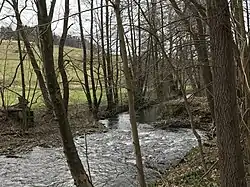 It rises near Großwaltersdorf at about 540 metres above sea level and runs in a west-nordwesterly direction. From below Eppendorf to its mouth the waterbody has cut a roughly 100 metre deep valley into the terrain. Between the Lößnitz valley and the former halt of Metzdorf on the Hetzdorf and Großwaltersdorf narrow gauge railway, the river meanders markedly in a relatively wide and visibly waterlogged river meadow. The adjoining section to the mouth, on the other hand has a significantly steeper gradient and only a narrow floodplain.[1]