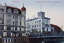 In the second half of the 19th century, new buildings have been erected in the street: the Seminary Building (1858), and the Lloyd's Palace (1884), both placed on the plot of the dried moat castle. The most representative buildings, now gone, were standing at the intersection with Mostowa street: the House Jachmann (1838) with its cafe Bristol onto the Brda river, and the House Fryderyk (1902) comprising a restaurant Piwnica Fryderykowska, a department store and suites, design by builder Joseph Święcicki.[8]
