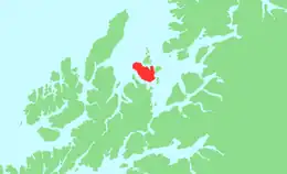 Grytøya (Norwegian) or Rivttek (Northern Sami) is an island in Harstad Municipality in Troms og Finnmark county, Norway. The 108-square-kilometre (42 sq mi) island lies just north of the large island of Hinnøya and south of the island of Bjarkøya. It is surrounded by the Vågsfjorden in the east and the Andfjorden in the west. The highest peak on the island is the 1,012-metre (3,320 ft) tall mountain Nona. The population of Grytøya (2017) is 433. The southeastern part of the island is the most agriculturally productive.[1]