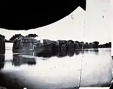 In 1724 (the second year of Yongzheng (雍正二年), Zhang Ziqian, magistrate of a prefecture, repaired the bridge and had two statues of oxen cast, one for the west bridge and the one for the east, which were meant to protect the bridge.[2] In 1842, the eastern ox statue was lost to a flood. There is a folksong about it, which praises the beautiful scene of Guangji Bridge, describing 18 boats, 24 piers, 24 pavilions, and the 2 statues of oxen made of cast iron (潮州湘桥好风流,十八梭船,二十四洲,二十四楼台,二十四样,二只鉎牛一只溜).[6]