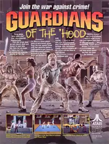 Guardians of the 'Hood is a 1992 side-scrolling beat 'em up developed and released by Atari Games for arcades. The game features digitized sprites, similar to Pit-Fighter, and sprite scaling effects that gives a feeling of depth. It was originally sold in both dedicated cabinets and conversion kits.