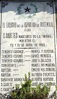 Monument to the military cadets that were shot by order of president Manuel Estrada Cabrera in 1908 following an assassination attempt against him. Built in 1920 on Hill #2.[13]