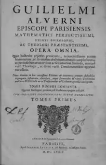- ↑ William of Auvergne by Roland Teske, on Bartholomew's World, William of Auvergne accessed on 23 August 2010