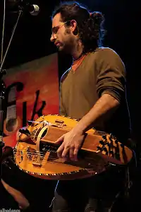 Guillem Ballaz i Bogunyà (born 17 August 1978) is a Catalan musician who has focused his work on Catalan traditional music. First through groups like Sol i Serena, and later under his name in a more personal project. He has also made an important task studying and revitalizing the Catalan square tambourine "pandero quadrat" and their tunes and Catalan folk violin.