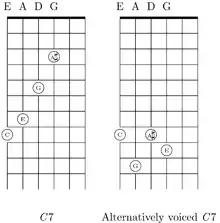 | Chord | Root | Major third | Perfect fifth | Minor seventh |