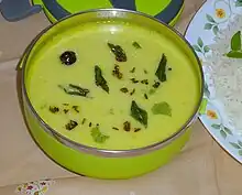 Gujarati kadhi (Gujarati: કઢી) is a Gujarati version of kadhi.[1] It is a very popular Gujarati dish made from buttermilk or dahi (yogurt) and gram flour.[2] Kadhi is an essential part of Gujarati cuisine.[3]