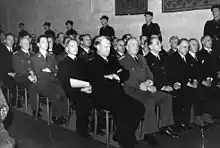 TheStatsakten ceremony at Akershus Castle in Oslo, Norway, on 1 February 1942, in which Reichskommissar Josef Terboven installed Vidkun Quisling (center) as "Minister President" of Norway. Lunde sits second to the left from Quisling.