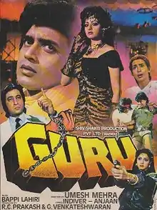 Guru is a 1989 Indian Hindi-language film directed by Umesh Mehra, starring Nutan, Mithun Chakraborty, Sridevi and Shakti Kapoor.[1][2][3] The film was a major commercial success. Incidentally, after 14 years, Chakraborty worked in a 2003 film of the same name in Bengali, as well as a 2007 film of the same name, 18 years later.