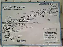 Guru Gobind Singh Marg was inaugurated on April 10, 1973, amidst great rejoicing and fanfare with efforts of then Chief Minister of Punjab, Giani Zail Singh.[4] The original map of this marg has been prepared by Trilok Singh Chitarkar and published by Languages Department, Punjab in year 1972. [5][6][7] It is now proposed to extend this road up to Nanded, Maharashtra.[8]