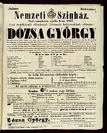 Dózsa György is an 1867 Hungarian opera in five acts by Ferenc Erkel. It is a dramatisation of the life of late mediaeval peasant revolt leader György Dózsa. Its libretto, by Ede Szigligeti, was based on Mór Jókai's tragedy of the same name.[1]