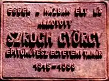 György Szrogh commemorative plaque in Budapest District III, Szépvölgyi Street No 1/c