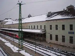 Győr railway station (Hungarian: Győr vasútállomás) is the main railway station in Győr, Győr-Moson-Sopron County, Hungary. The station opened on 24 December 1855.[1] The station is located on the main line between Vienna and Budapest (Line 1 Budapest–Hegyeshalom railway) and Line 8 Győr–Sopron railway, Line 10 Győr–Celldömölk railway and Line 11 Győr–Veszprém railway. The train services are operated by MÁV START.