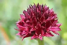 Gymnadenia austriaca is a species of plant in the family Orchidaceae. It is endemic to the Alps and the Pyrenees,[1] where it grows on calcareous alpine grassland from 1,500–2,500 metres (4,900–8,200 ft). It was first described by Teppner and Klein as a subspecies of Nigratella nigra (ssp austriaca) and was subsequently reclassified as G. austriaca as an apomictic member of the G. nigra group within the genus Gymnadenia.[2]