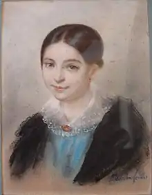 Born on 2 November 1812 in Paris, Joséphine Jeanne Hélène Feillet was the daughter of the painter and lithographer Pierre Jacques Feillet (1794–1855) and Hélène Pernotin. She was introduced to art by her father before studying portraiture under the Dutch artist Ary Scheffer (1795–1858).[1] Her elder sister, Blanche Hennebutte-Feillet (1815–1886), was also a lithographer.[3]