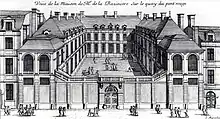 The Hôtel de Chimay, originally the Hôtel de La Bazinière, is a hôtel particulier, a type of large townhouse of France, built in 1635 on a site that is now at 17 quai Malaquais in the 6th arrondissement of Paris. Since 1883, it has been an extension of the École nationale supérieure des Beaux-Arts, a distinguished National School of Fine Arts.