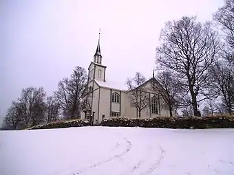 Hølonda Church (Norwegian: Hølonda kirke) is a parish church of the Church of Norway in Melhus municipality in Trøndelag county, Norway. It is located near the Krokstad farm, just west of Gåsbakken which is about 14 kilometres (8.7 mi) west of the village of Hovin and about 9 kilometres (5.6 mi) southwest of the village of Korsvegen. It is the church for the Hølanda parish which is part of the Gauldal prosti (deanery) in the Diocese of Nidaros. The white, wooden church was built in a cruciform style in 1848 using plans drawn up by the architect Christian Heinrich Grosch. The church seats about 250 people.[1][2][3]