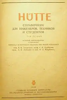 First volume of the 16th Russian edition of "Engineer's Manual" of the Hütte Academy in Berlin, published in 1936